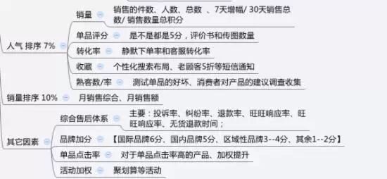 除了大家熟知的综合排名外,还有人气排序(7%),销量排序(10%)和其它的因素占比。