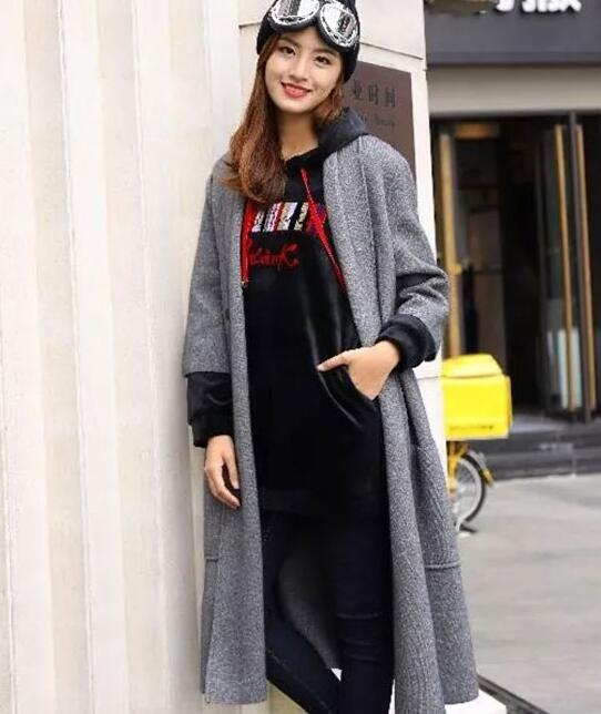 ROLAFY用基础款灰色大衣搭配连帽衫,简洁流畅又大方得体。