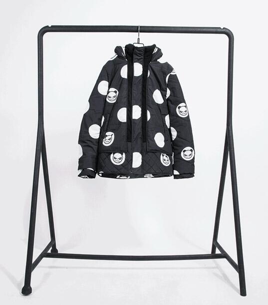 在纯黑的羽绒服上,选用银光材质的减速带在袖口进行装饰。竖向的几何排列在视觉上有缩小上半身的效果,后背HIPANDA LOGO的加持突破秋冬常规的all-black风,打造强烈个人主义。