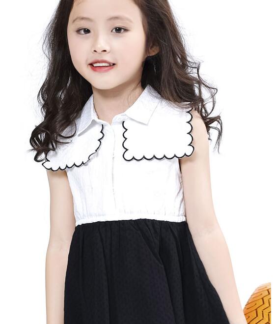 白色无袖的上衣、黑色简洁的裙摆,就是落落大方的你迷人的打扮。无袖的设计既适度的露肤是夏天需要的,这让你夏天更加的凉快。腰间的紧身松紧带把孩子袖长的身姿和玲珑的曲线显示出来,有些女人淑女温柔的风范了。水手的方领设计加入了弧形的花边萌萌哒,你一笑我就陶醉了。
