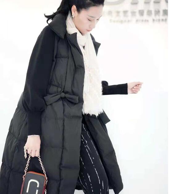 如果你喜欢高冷时尚范儿,那么黑色就比较适合你,而且黑色还是十分显瘦的,这样一来,是不是一举两得呢?底色的这一款黑色长款羽绒服还加入了针织的元素,还有蝴蝶结作为装饰,让整体也有了女性的甜美感,不会太过于高冷。