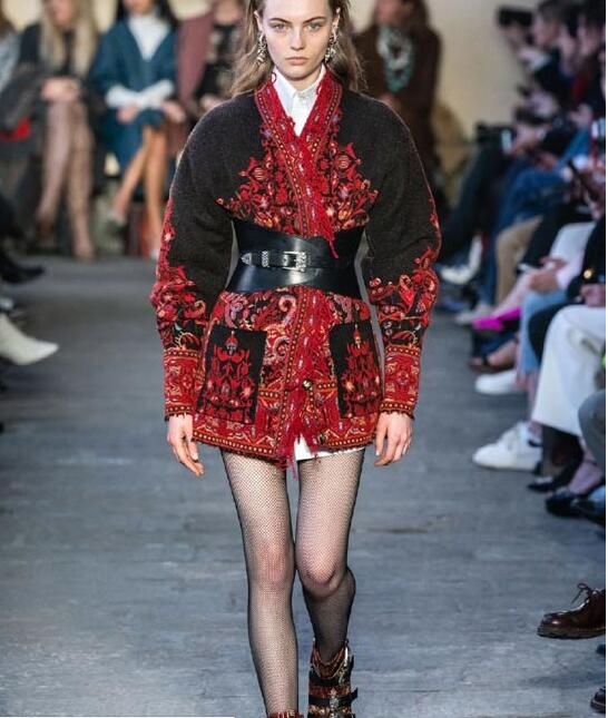 ETRO本季仍旧以经典的佩斯利印花与流苏元素为主,但却更倾向于维多利亚/爱德华时期的风格,交融串珠、金线刺绣、塔夫绸等元素,表达着对豪华质感的认可。