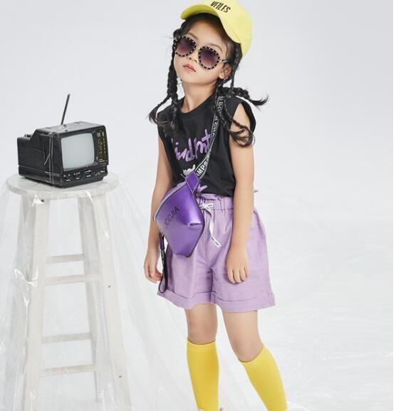 春夏日节一条宽松短裤的造型舒适又清新,浅紫色短裤魅力的表现,个性的女童造型西瓜王子完美的出现。