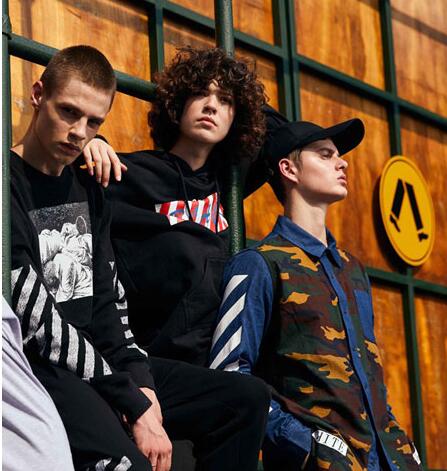 OFF BLACK精密的服饰设计,张扬特性的裁剪,独有的创意与理念,点缀艺术变体的品牌字母、口号、肖像。专门展示活力的街头风格。秉承“青春,潮流,活力,自由”的风格定位。