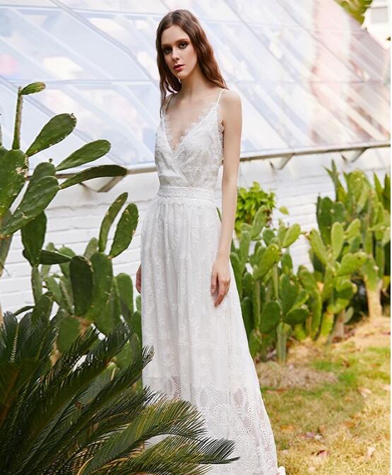 非常性感有味的这条纯白色的吊带连衣裙,采用优雅的V领设计,加上蕾丝睫毛边的点缀,极大提升了这件连衣裙的复古性感的气息。配合高腰的剪裁以及过膝的长度,以及精致的镂空提花的设计,穿着起来非的时尚好看,而且及踝的长度,能够帮你轻松遮住腿部的肉肉,搭配上一双白色的法式复古风的浅口单鞋,非常的大气优雅。