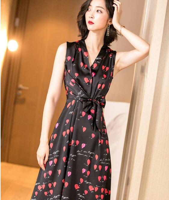 一款黑色的连衣裙,而有着印花的点缀,让这样的一款连衣裙也是有着一种优雅知性的味道,而无袖的设计,让你整个人更是特别的突出,而夏季这样穿,可不是很惹人喜欢?而同时这样的连衣裙也是有着收腰的设计,让你整个人显得也是可以更加的有气质,而并且对于这样的一款连衣裙让你整个人的气质更是能够因此提高上很多。