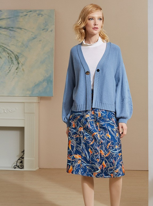 印象草原女装2019年流行颜色一览,蓝色系肯定是非常不错的选择,蓝色也凸显出活力的效果,蓝色的精致感而且也超级显白,让我们一起来看看示范穿搭,针织毛衣款式如何搭配下身。