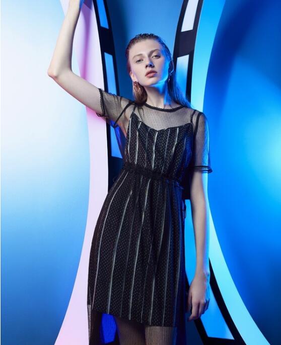 这款小黑裙真的很优雅,穿上像是一只优雅的黑天鹅比较赫本风。镂空的设计性感又高级,外面雪纺纱的设计长度恰到好处,多了几分神秘感。领口小花边的设计非常精致。里面的条纹黑色吊带非常好看。收腰的设计显身形又优化整体身材比例。真的非常显气质又显瘦,搭配一双高跟鞋衬出这条小黑裙的高级和美感,穿上它完全可以出席酒会尽显优雅。