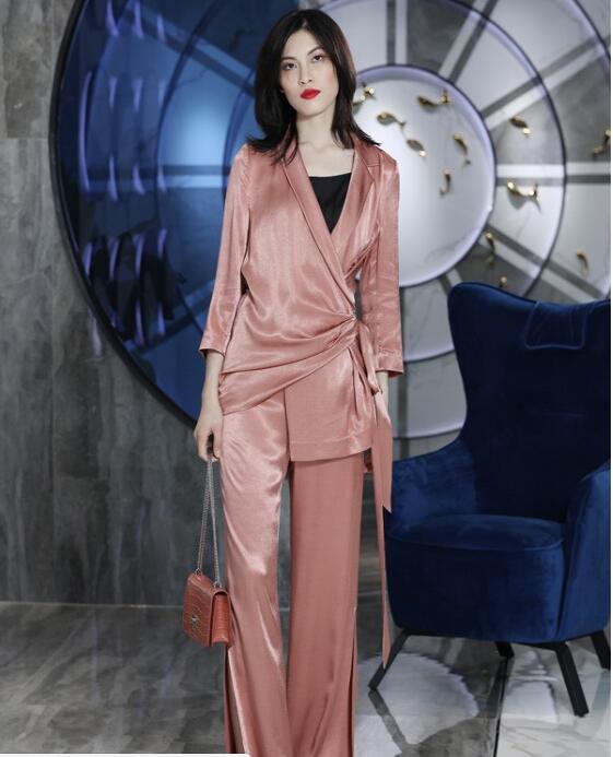 不一样的面料,给人的感觉也是不一样的,这样的真丝面料,让你整个人显得也是很优雅贵气,而并且也是这样的一款穿搭,款式上的设计也是很有质感,让你整个人显得也是特别的优雅大方,而同时还有着腰带的加持,让你更是十分的有气质,夏季这样穿,对于你可不是特别的惹人喜欢?加上裤脚开叉设计,垂坠感非常,让你腿型也是可以更加好看。