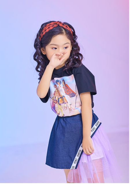 看完男生的,再看女生的又是什么样的神仙搭配,同样是百搭的T恤,胸前的大面积图案印花,使得这件T恤不再单调,搭配上一条小短裙,短裙的纱质面料、字母印花,毫无疑问是这裙子的亮点,穿着这一身搭配,谁还不是个小公主呢,不容错过!