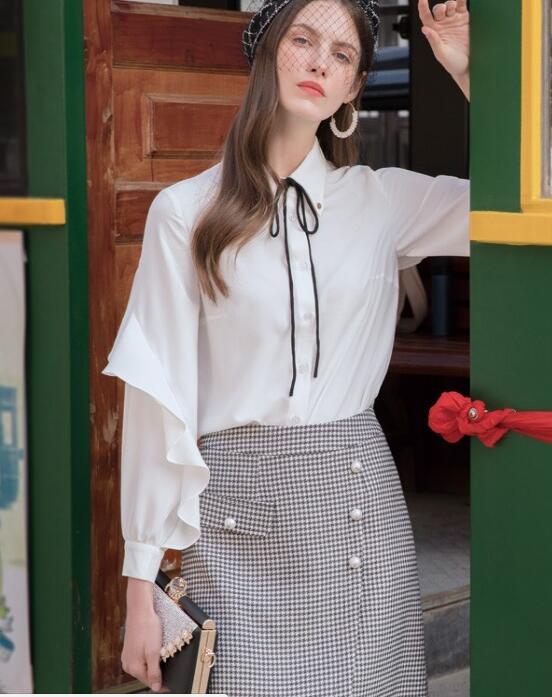 LOOK2:白衬衣是一款显气质的单品,可以助力打造出气质造型!莆田安福家园的这款白衬衣,颜色清爽干净,穿起来简约显气质。下身搭配一条灰色半身包臀短裙,颜色经典低调,穿起来简约显气质!呈现出气质的淑女风造型!
