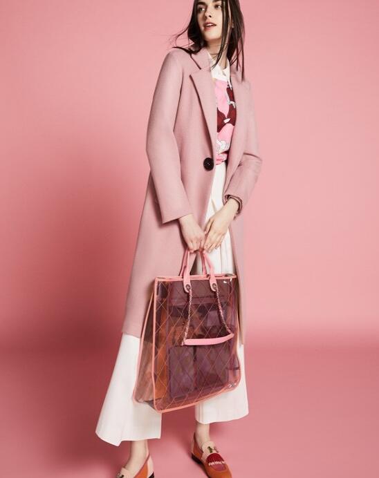 秋季最少不了的一定就是呢子大衣,呢子大衣是最能显气质的衣服,没有之一。这件大衣打破了大衣在大众心中的形象,很多人觉得大衣就是要穿暗色系的,才能与秋季和冬季搭配显得不太违和,但是这件粉色的大衣,你一定不会不喜欢的,清新的粉色让人眼前一亮,呢子的材质显得质感超级好,经典好看的大翻领,非常的显气质。这套搭配里面是白色的,外面是粉色的大衣,这样的搭配真的会超级显白,衬的人清新无比。