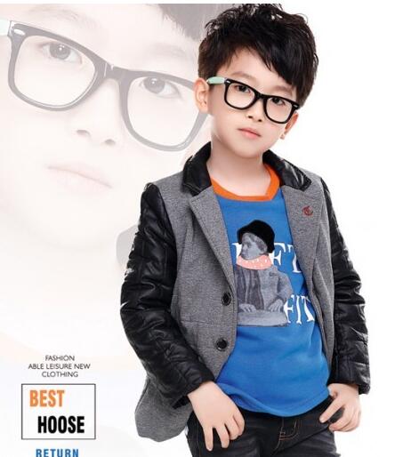 男童牛仔裤还有一种颜色那就是黑色,黑色是比较适合秋冬季节穿搭,黑色牛仔裤搭配一件宝蓝色T恤,无论什么时候T恤永远是最经典百搭的款式,再搭配一件小西装外套,灰色呢子拼接黑色皮质袖子的西装款式是不是更加的帅气呢?