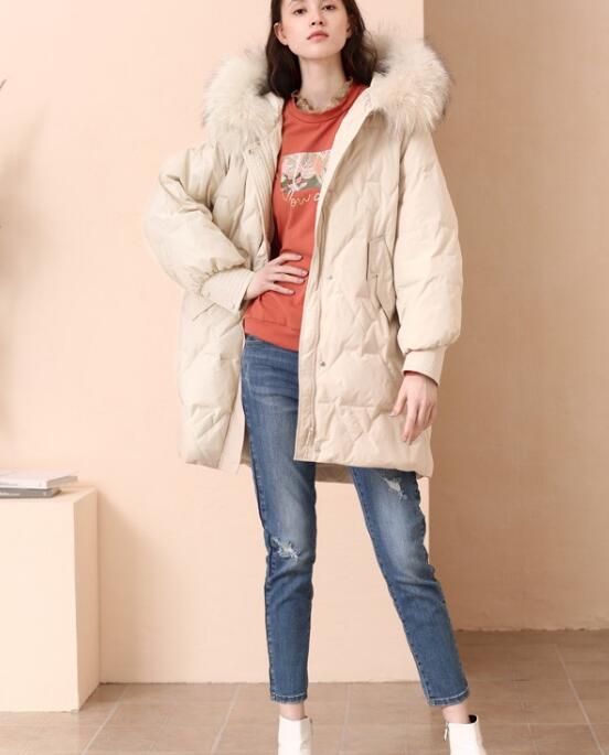 这件羽绒服的的长度设计是属于中长款,比一般的长款看起来更显舒适和自然,不会太过臃肿,关键是里面的羽绒是纯鸭绒的,保暖效果非常好,即使是下雪天穿也不用怕冷,这款白色的羽绒服给人视觉上非常舒适的感觉,帽子上还有毛领的设计,时尚又很保暖。