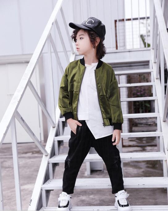 男童LOOK:现在宝宝们还在成长期,所以平时穿搭要舒适为主,当然也要掌握时尚穿搭技巧,为孩子们打造出时尚感的造型!家长可以为男宝宝选择一款夹克外套,欧米源童装品牌的这款绿色夹克休闲外套,颜色出挑,穿起来休闲有范。里面搭配一件白色的不规则打底衫,版型简约不失设计感,提升了造型的时尚感。下身搭配一条黑色的休闲裤,颜色经典百搭,穿起来休闲时尚。搭配一双浅色系的运动鞋,提升了造型的舒适度。在这个穿搭基础上,佩戴一顶黑色的棒球帽,让男宝宝的造型更帅气!