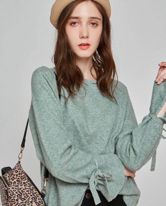 这款针织衫的配色是非常清新淡雅的淡绿色,在秋冬的时候,很多人都喜欢穿暖色系的衣服,这款针织衫的配色确实非常耐看,有很显白的绿色,更显与众不同,而且袖口处还有系带的设计,也很有设计特色,针织的质地穿起来非常的柔软和自然。