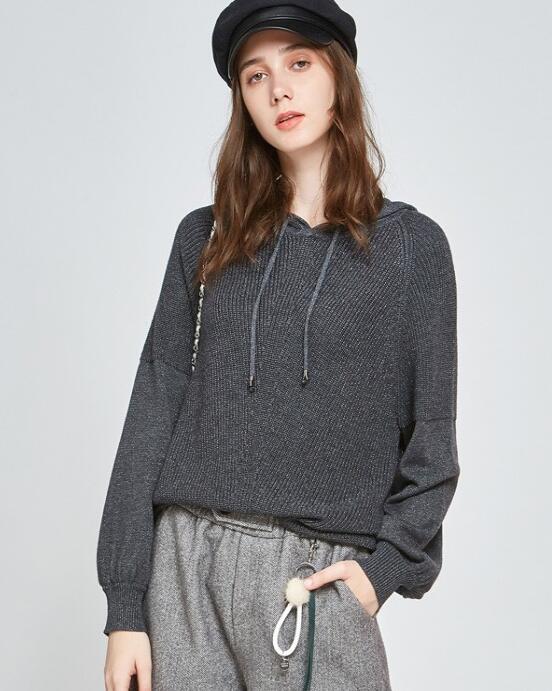 这件针织的版型设计是卫衣,深灰色看起来非常显质感,也很高级,还有连帽的和抽绳的设计,而且版型是偏宽松的,这件卫衣式烦人针织衫,比一般的衣服更显气质。