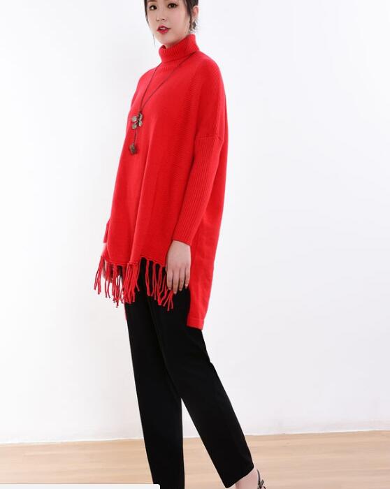 针织单品在秋冬时节出镜率高,女性可以为自己挑选一款亮色系的针织衫。莆田安福家园女装品牌的这件红色高领针织衫,颜色鲜艳穿起来衬肤色,高领设计保暖效果好,衣摆流苏设计让造型更具个性。在这个基础上,佩戴一款毛衣链让造型更为精致。下身搭配一条黑色的长裤,颜色经典百搭,穿起来简约有质感。整体造型运用了经典的配色,有设计感的单品可以让造型更为出挑!