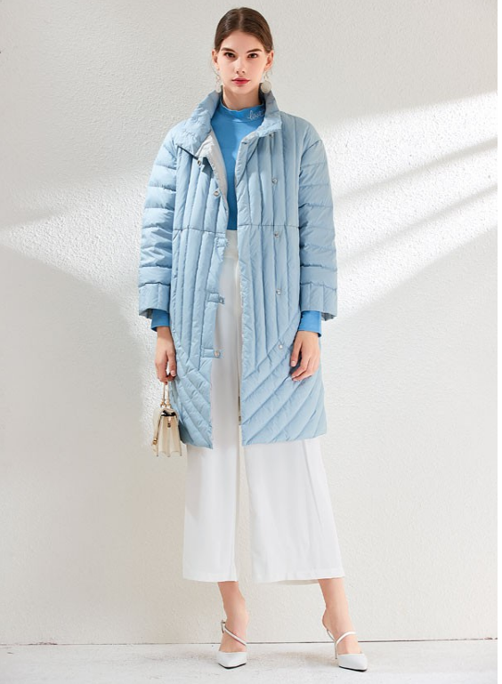 这款羽绒服颜色上采用的是高级显白的蓝色,蓝色有很好的衬肤色的作用。这款羽绒服款式简单大气,经典的小立领设计优雅知性,衣身的纹理感设计多了几分时尚感。轻薄的款式,高含绒量穿上身满满的温柔安全感。搭配一款蓝色毛衣和阔腿裤轻松穿出好身材!这样一款舒适的羽绒服你值得拥有!