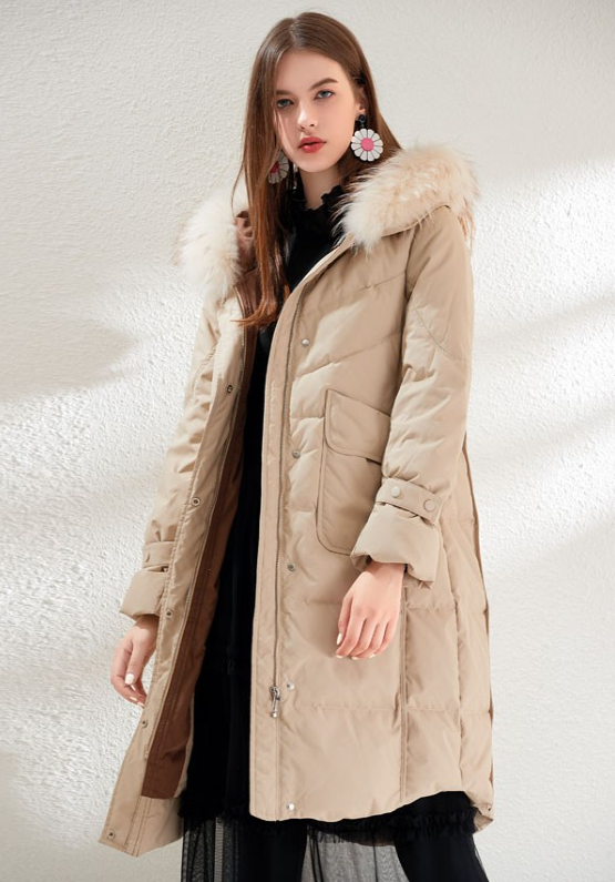 这款羽绒服采用中长款式,低饱和度的卡其色满满的温柔高级范。这款羽绒服大毛领的设计高级洋气,衣身的大口袋设计增加了几分时尚感。中长款的羽绒服能够很好的遮盖身材的小缺陷,轻松穿出好比例。宽松的版型、丰富的羽绒满满的安全感。这样一款舒适的羽绒服搭配黑色打底和靴子即可轻松穿出高级范。