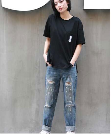要说简约、随性的穿搭,T恤是必备的,看莆田安福家园女装这一身的穿搭:上身穿着一件黑色的T恤,圆领的设计,经典大方,完美展现脖子曲线, 极简的纯色系,看起来满满的高级感,搭配起来还不容易出错,下身搭配 一条破洞牛仔裤,简约大方,很奈斯。
