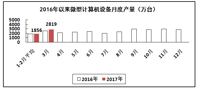 计算机职业出产增速持续上升,出口局势有所好转。一季度,出产微型计算机设备6570万台,增加2.1%,其间笔记本电脑3903万台,增加10%;平板电脑1604万台,降低16%。出口交货值同比增加7.3%,其间3月份增加13.8%。
