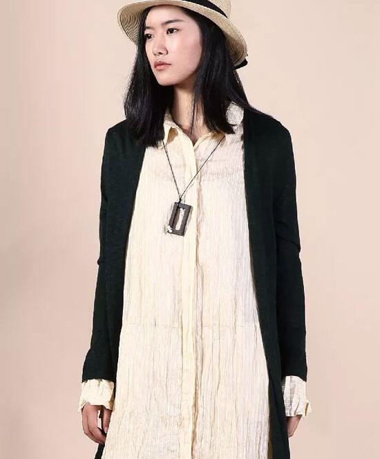 深草绿长款针织衫,轻盈飘逸,利落洒脱的廓形配以舒展柔软的线条,完美展示女性完美身材比例,体现优雅的高级森女系风格。