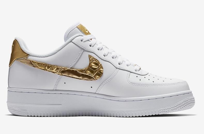在Air Force 1纯白色鞋身的基础造型上,分别在鞋侧Swoosh、鞋带扣、鞋舌及后跟特别添加了C罗标志性的金色元素加持,并在内衬及后跟处绣有C罗签名和CR7字样彰显不凡气质,极具纪念意义,可以说这双金靴完全配得上这位“金球先生”了。