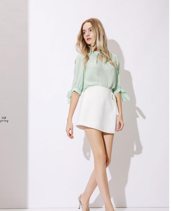 绿色是自然界中很常见的一种颜色,所以我们对这种颜色并不陌生,当看到依库女装2018春季新品时,我才知道自己对绿色的理解太表面。一款浅绿色雪纺上衣,搭配白色半身裙,随意、清新、自然,你一定也会爱上这种颜色!