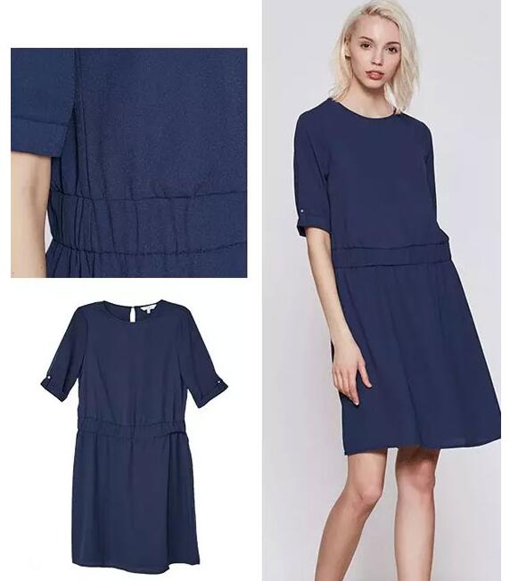 大方得体的短袖连衣裙,采用恰当剪裁结合略A裙摆,干练又不乏时尚气息;D型环腰带收腰显瘦,于简洁中带出视觉惊喜!