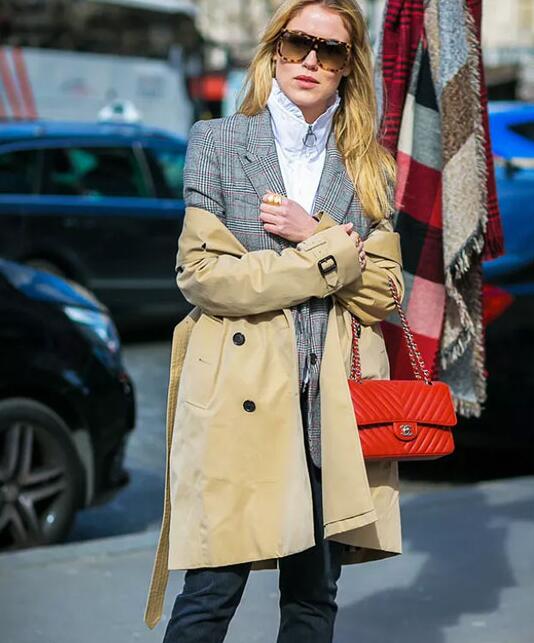 黑色是个安全色,但也是个最容易沉闷的色彩,但只要有一个红色包包点缀,立马亮眼,你想要的稳重和醒目感都有了。