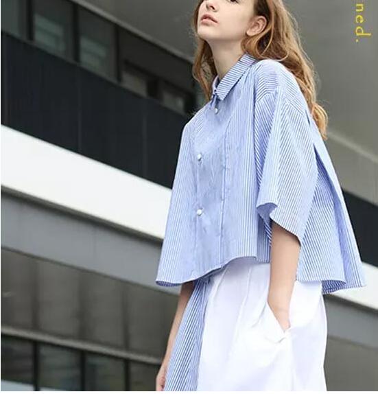 迪丽热巴这一款条纹上衣也是休闲百搭,宽松的版型显瘦显腿长,搭配白色短裤青春活泼。而且出游还可以防晒。有人说条纹会显胖,其实主要选对款式做好搭配,一样可以瘦。