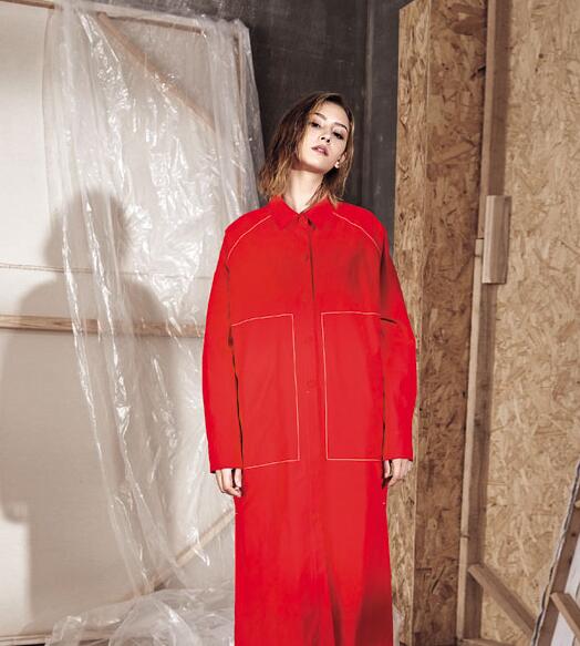 单品的穿搭是很简单的,因为它不需要你费心去思考上衣该搭什么或是下装要配什么,只身穿一件简约的衬衫式裙装即可出门。若是感觉冷了,再加件风衣就OK啦~~