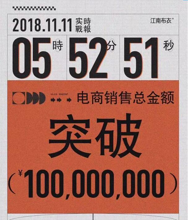 中国安福相册网获悉,江南布衣双十一开售后,用时5小时52分51秒,线上总销售额突破一亿元。