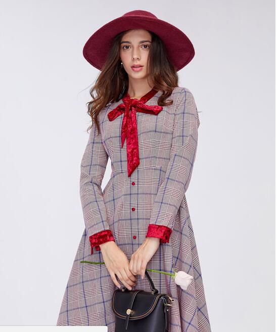 非常韩范的一款格纹连衣裙,精约时尚的取舍,带着复古帅气的规划理念,营造出干练的率性风仪,带出典雅的浪漫美感。