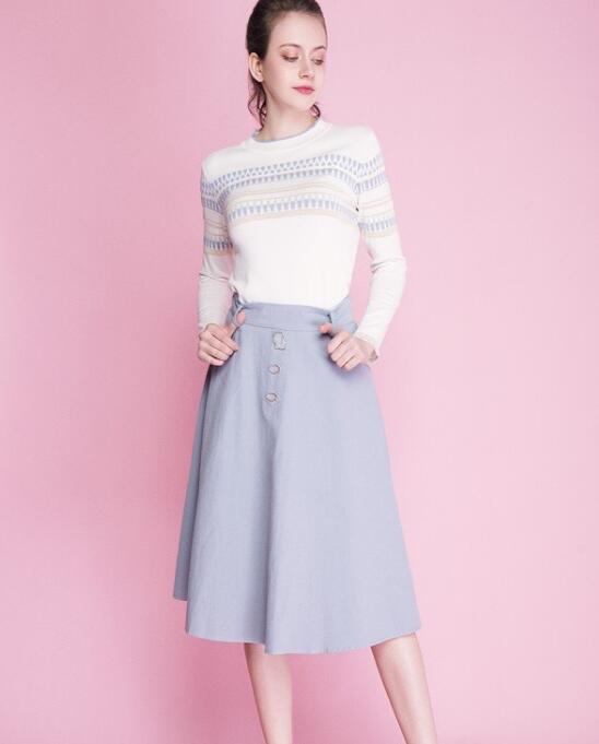 一款淡蓝色的裙装也是特别的不错,而这样的半身裙,有着高腰的设计,让你整个人看起来还是很高挑,同时也就是这样的一款裙装搭配又是特别轻松,不用丝毫功力,就让你整个人显得特别有气质,同时呈A的设计,给你整体也是被显得高挑非常,所以这样的一款高腰半身裙,可不也就是你想要的?