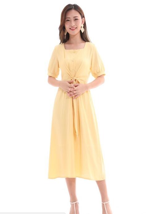 夏季如果你想要随着男友去见家长,连衣裙可以多准备几件。夏季不妨来上一款黄色的连衣裙,简单的方领设计配上微微的泡泡袖,胸前是纽扣装饰,配上独特的系带处理,简单大方中更带出几分别致的时尚感,优雅不失青春的活力,喜欢的朋友可以试试哦。