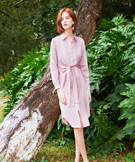 除了衬衣加裙装的搭配,这款衬衣式的连衣裙,也是另一种风格。经典的立领设计,简单大方。单排扣给人的感觉,精致而又优雅。腰间的系带收紧腰身,凸显身材。裙摆处不规则的设计,透露出一丝小性感。整体隐约有点复古风格,优雅、知性却不失性感。