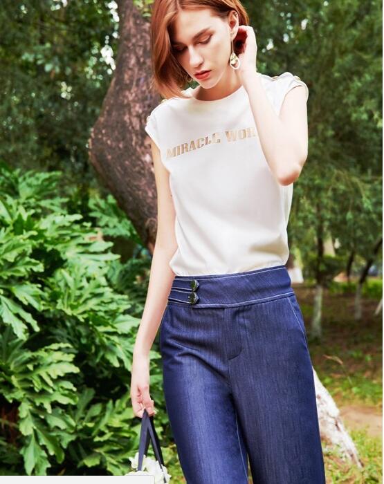 这件无袖上衣胸前箔金字母印花颇为亮眼,舒适的圆领,略微宽松的廓形,一排经典的金色纽扣点缀肩头。单品造型休闲简洁,简约清爽的款式,下身搭配一条牛仔裤,腰间出独特的设计,也是一种吸睛的穿搭,精致却又不失情趣。