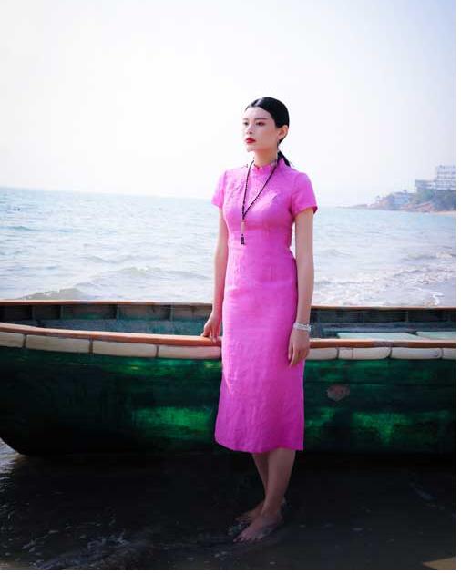 纯色系列的连衣裙,往往容带给人一种非凡的感受,纯深粉红色让不禁觉得可爱。整体的衣装也是非常的有气质,这样的衣装很适合去聚合场所,让你的气质凸显出来。