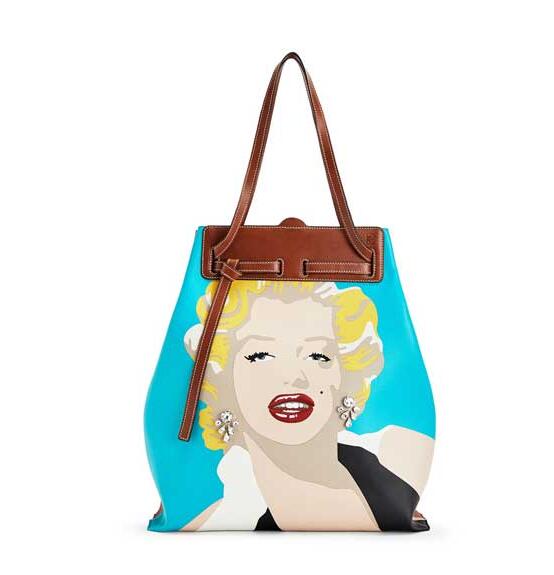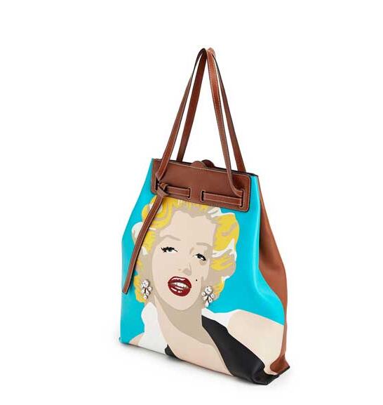 Loewe品牌2019年超新一款包包《Tie Tote Marylin》,手提包的弧形手风琴侧面采用时尚的垂直手提包形状,由平面皮革镶构成。通过这些循环是小牛皮表带,带有签名的腰带结装饰。