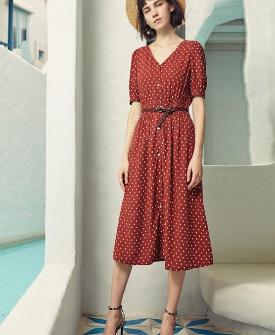 LOOK1:连衣裙是夏日出镜率较高的单品,也是女生的专属单品。女生可以为自己选择一款红色波点连衣裙,颜色鲜艳衬肤色,波点元素经典复古,V领凸显颈部曲线,版型简约大方,显气质,穿搭的时候系上腰带,凸显腰线更显身材。再搭配一双气质高跟凉鞋,出门佩戴一顶草编遮阳帽,打造出了复古显气质的夏日造型,掌握连衣裙穿搭,让你的夏天更耀眼!