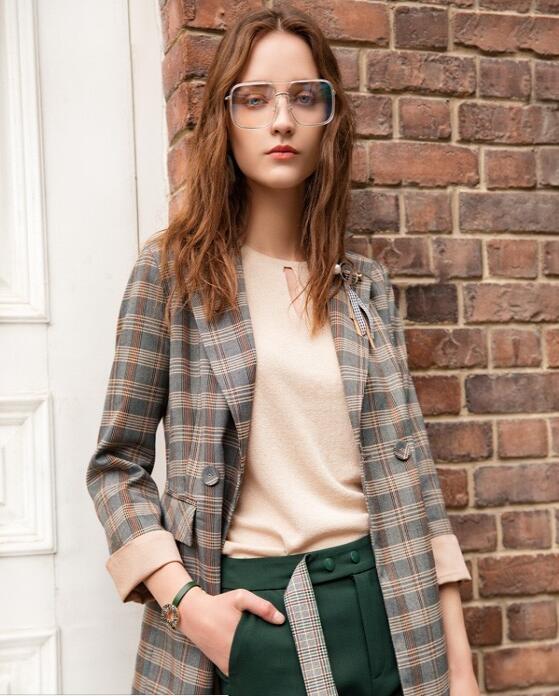 这些年来小西装是非常流行的,几乎所有的女孩子人手一件小西装。英伦风的格子小西装一定也是让人眼前一亮的,偏绿色的格子不仅好看,还显得非常的优雅气质。这款西装是比较收身的设计,会显得人比较的纤细干练,不管是约会还是通勤,都是非常不错的选择,完全不挑场合。