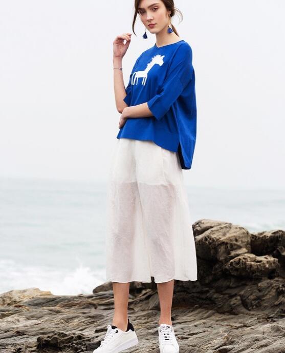 其实这样的蓝色上衣,款式也是很简单,同时这样的上衣,衣摆上有着开叉的设计,而这样的衣服搭配的话,下面一条白色的阔腿裤,让你整个人显得也是尤其的干练利落,而并且面对这样的一款穿搭,对你整个夏季来说,更是一道时髦精,而夏季这样的穿搭,你要是也是想要准备上一款的话,那么现在怎么能够错过它呢?
