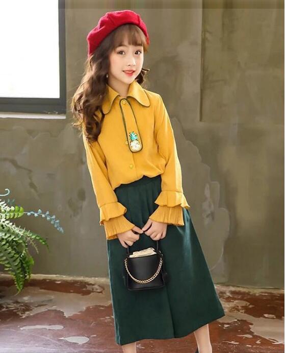 这套有些复古的搭配,不管是出门游玩还是拍照都很适合。这款衬衣是用独特的染料渲染才能有这种特殊的色彩呈现出来,领口和袖口的设计都很精致。下身的墨绿色裙子,是非常好看的经典颜色,稍微有些开叉的设计,也是很好看的。头上是一顶红色的贝雷帽,一身很复古的搭配。