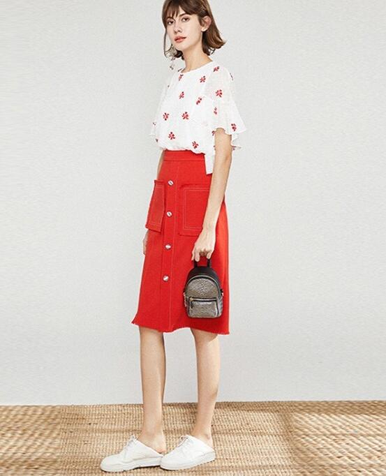 大红色的半身裙,款式也是很简单大方,而当然这样的半身裙搭配的话也是特别容易,上面一件白色的印花雪纺上衣,款式简单,但是让你整个人自带一种凉意,可不也是视觉上的一种空调,而也正是因此,在夏季怎么穿更加合适的话,现在也就一定要记得关注一下这样的一款,给你整个人也是能够带来意想不到的效果,你又还要错过吗?