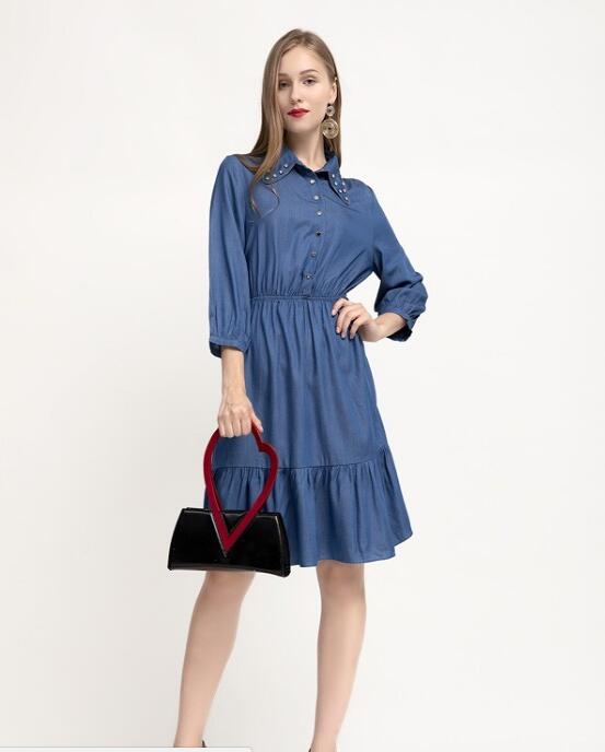 衬衫可以是单穿款式,也可以是裙装的效果,衬衫配裤装配半身裙都是不错的选择,直接衬衫裙的体现也很不错,木丝语女装深蓝色衬衫裙款式搭配,深蓝色的经典百搭选择也很有特色哦。