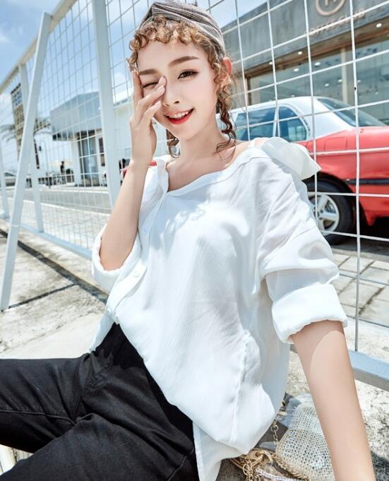白色衬衣干净无瑕,看起来真的温柔极了v领的设计,性感简约,修饰脸型,简单的衬衣,没有任何装饰,看起来真的很好看,用简单的款式哦穿出不一样的气质,下身搭配一件黑色裤子,黑与白的搭配,真的很百搭,而且,这样的搭配不管怎么穿也很好看,都不会出错,搭配一双平底鞋,整体的气质休闲随性。