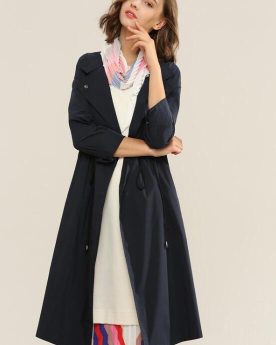 这款蓝色的风衣你觉得怎么样,这款蓝色的风衣很穿在身上很是显气质,内搭一件白色连衣裙圆领的设计修饰脸型露出性感的锁骨曲线,裙摆的长度很适合是哦,风衣穿在身上也是很显气质的那种,搭配一双高跟鞋,整体的造型很是休闲有很优雅,最重要的是这样的搭配很是好看优雅。