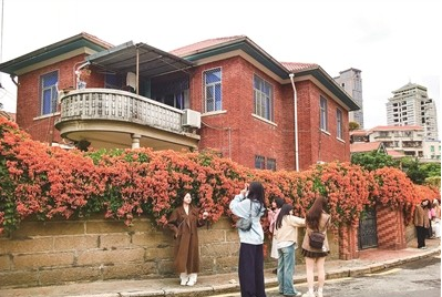 华新路33号是电视剧《一闪一闪亮星星》中男主角张万森的家,而“张万森家”的炮仗花每到早春便“张狂刷屏”,满屏都是市民游客在绚丽“花墙”下打卡的身影。